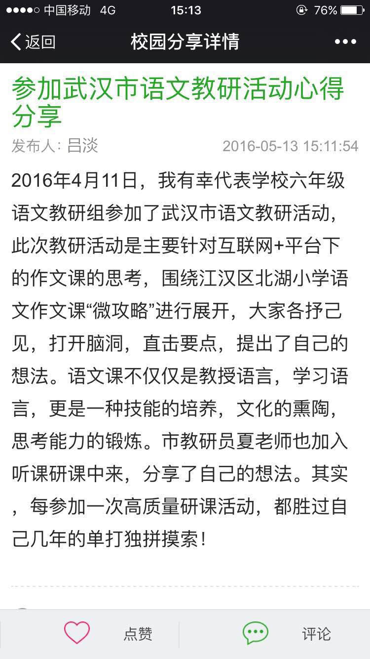 “校园分享”应用属于微校wxiao数字校园的行政管理和校园文化体系,使用对象为老师。通过该应用,老师可以随时发布备课信息、教学反思、学习心得、教培感悟、活动过程、优秀文章,新闻报道等内容。