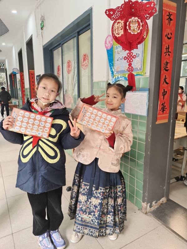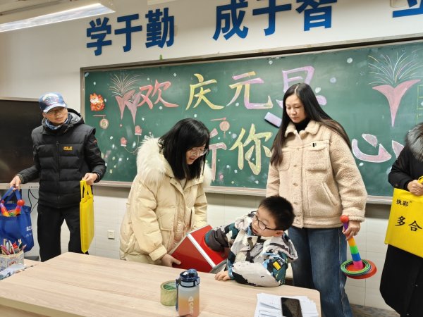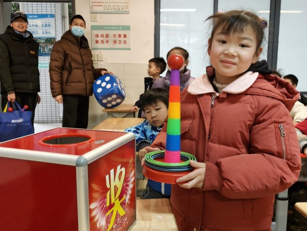 下午联欢时间,学校行政团队的老师们走进各班教室,为同学们送上了新年的祝福和礼物!抽奖箱里有许多丰富同学们课间活动的小礼物,“666”、“心灵手巧”、“步步高”、“一飞冲天”、“齐心协力”、“百发百中”,这些祝福语代表着益智棋类、套圈游戏道具、摸高器、团建游戏....希望孩子们在新的一年里玩中学、学中乐!